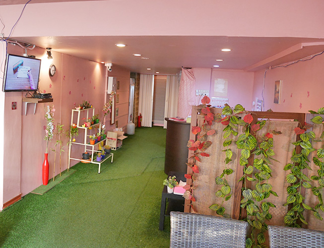 ピンクのやわらかな色のレセプションでいい感じの店内です。お部屋も個室でアカスリルームとマッサージルームが繋がっていてメニューの進行もスムーズ個室は清潔感がありリラックスできますよ。